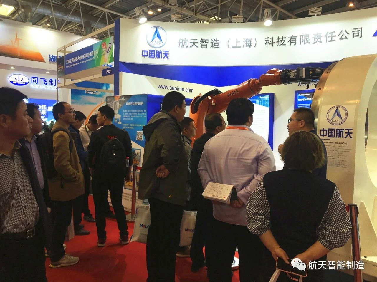 此次展會,航天智造攜機器人搭載拉伸器自動化緊固螺栓現(xiàn)場作業(yè)展示,以及智慧物流重載搬運車和其他非標自動化項目視頻展示,展現(xiàn)了航天智造在風電行業(yè)的解決方案和綜合能力。憑借產品的優(yōu)良性能和領先的自動化設計理念,更得益于行業(yè)客戶對航天智造的肯定和認可,開展第一天航天智造展臺就吸引了眾多用戶、整機廠和風電行業(yè)的專家蒞臨參觀,嘉賓和航天智造工作人員進行了氣氛熱烈的交流、積極探討,深入溝通未來產品、技術和行業(yè)發(fā)展的新方向。