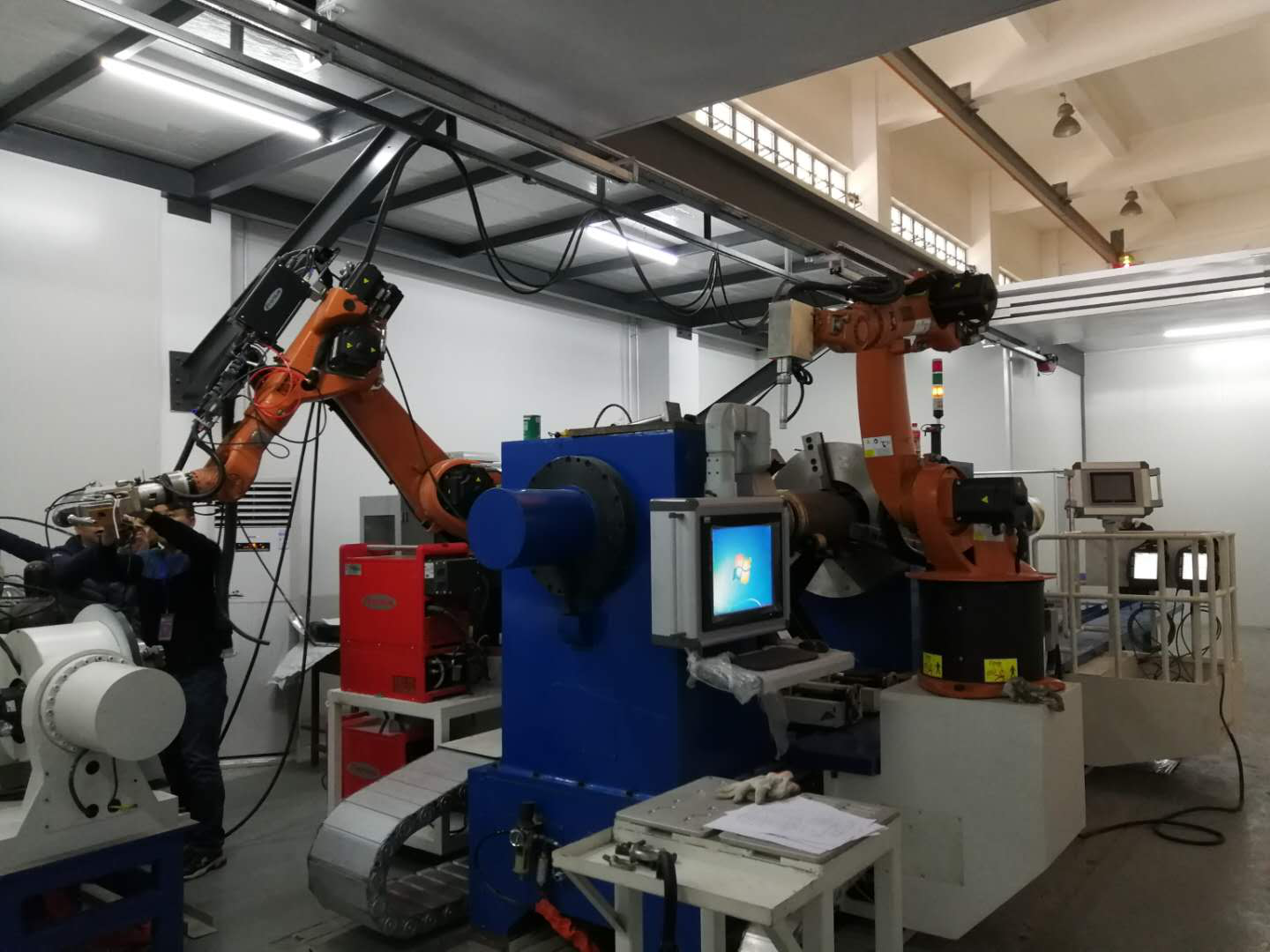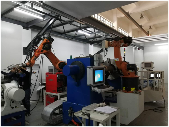 航天智造針對(duì)人工焊接航空產(chǎn)品時(shí)存在的痛點(diǎn)和難點(diǎn),創(chuàng)新性提出智能激光焊接的想法,設(shè)計(jì)研發(fā)了高精度數(shù)控式機(jī)器人智能激光焊接專機(jī)。該新型智能激光焊接專機(jī)一方面采用激光焊接取代弧焊,其高能束激光焊可兼容鋼、鋁、銅等不同材質(zhì),同時(shí)可處理不同壁厚的焊接件,且具有焊接熱輸入小、焊接變形小、焊縫質(zhì)量好、強(qiáng)度高的特點(diǎn);另一方面首次創(chuàng)新性實(shí)現(xiàn)了數(shù)控式夾具系統(tǒng)與激光焊接機(jī)器人系統(tǒng)的整合,有效提高了焊接效率,功能更加完善,產(chǎn)品兼容度更高,且從二維可調(diào)整擴(kuò)展到三維可調(diào)整,應(yīng)用更加廣泛。